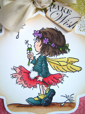 I used the adorable Dandelion Clock from Lily of the Valley for this card. She is a sweet little fairy!